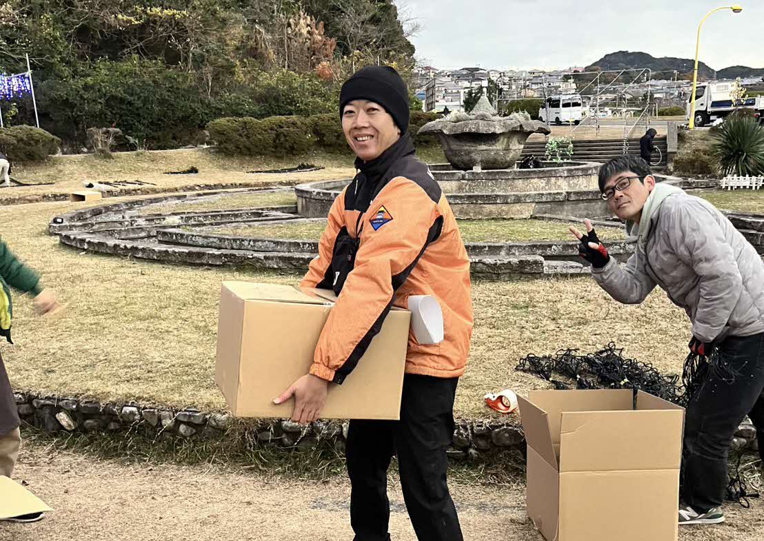 本日はみさきの光宴の撤収作業をボランティアの方々と行いました。2ヵ月かけて作り上げたイルミネーションも片付けはあっという間です・・!