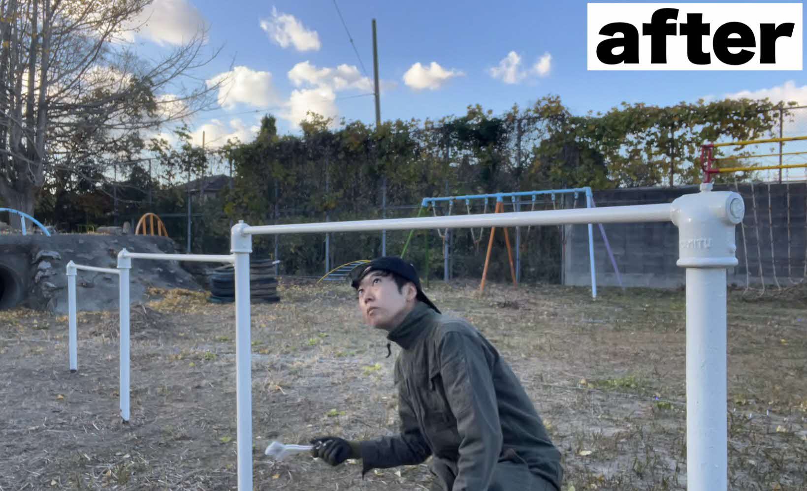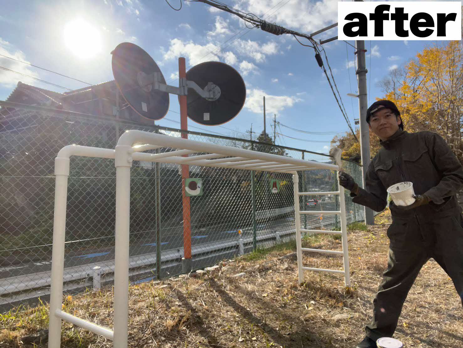 本日は、元多奈川保育所の有効活用のために作業をしました。本日は主に、遊具の塗装を行いました。サビサビだった遊具がとっても綺麗になりました!