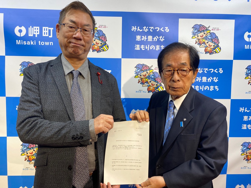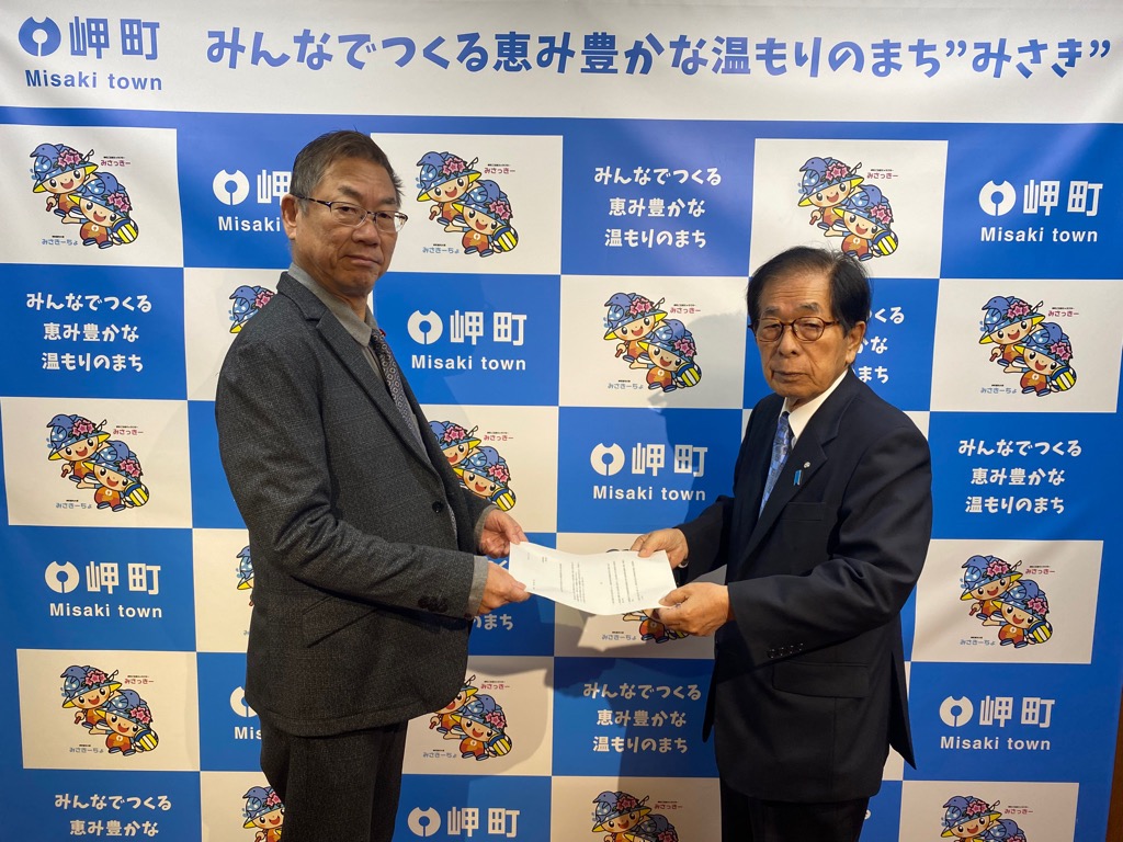 公明党岬支部より、国の重点支援地方交付金拡充に伴い、物価高騰対策として水道基本料金の負担軽減、生活必需品に対する実効的な支援などを求める要望書が提出されました。