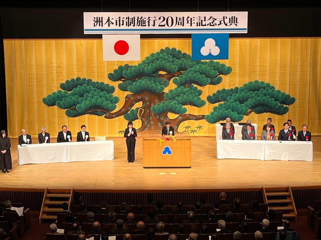町長は、兵庫県洲本市で開催された洲本市制施行20周年記念式典に出席しました。式典には多くの方々が出席され、20周年記念ビデオの上映やトークイベント、歓迎演奏等盛大に執り行われました。
