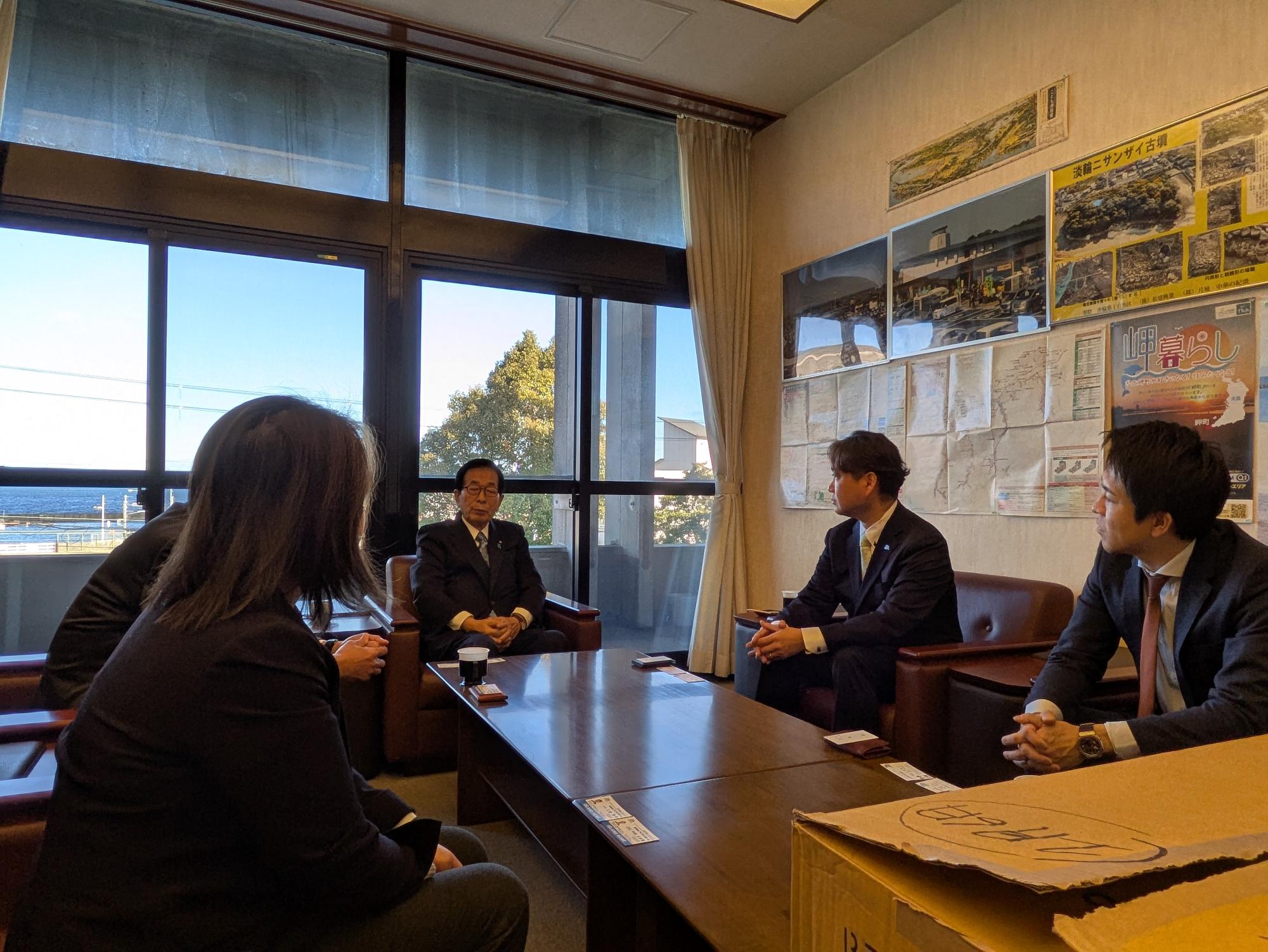 町長は、岬高校生が取り組む地域振興又は地域貢献に関する事業について、岬高校生地域活動支援事業報告会を開催し、岸野校長先生より活動事業の報告をいただくとともに、意見交換を行いました。