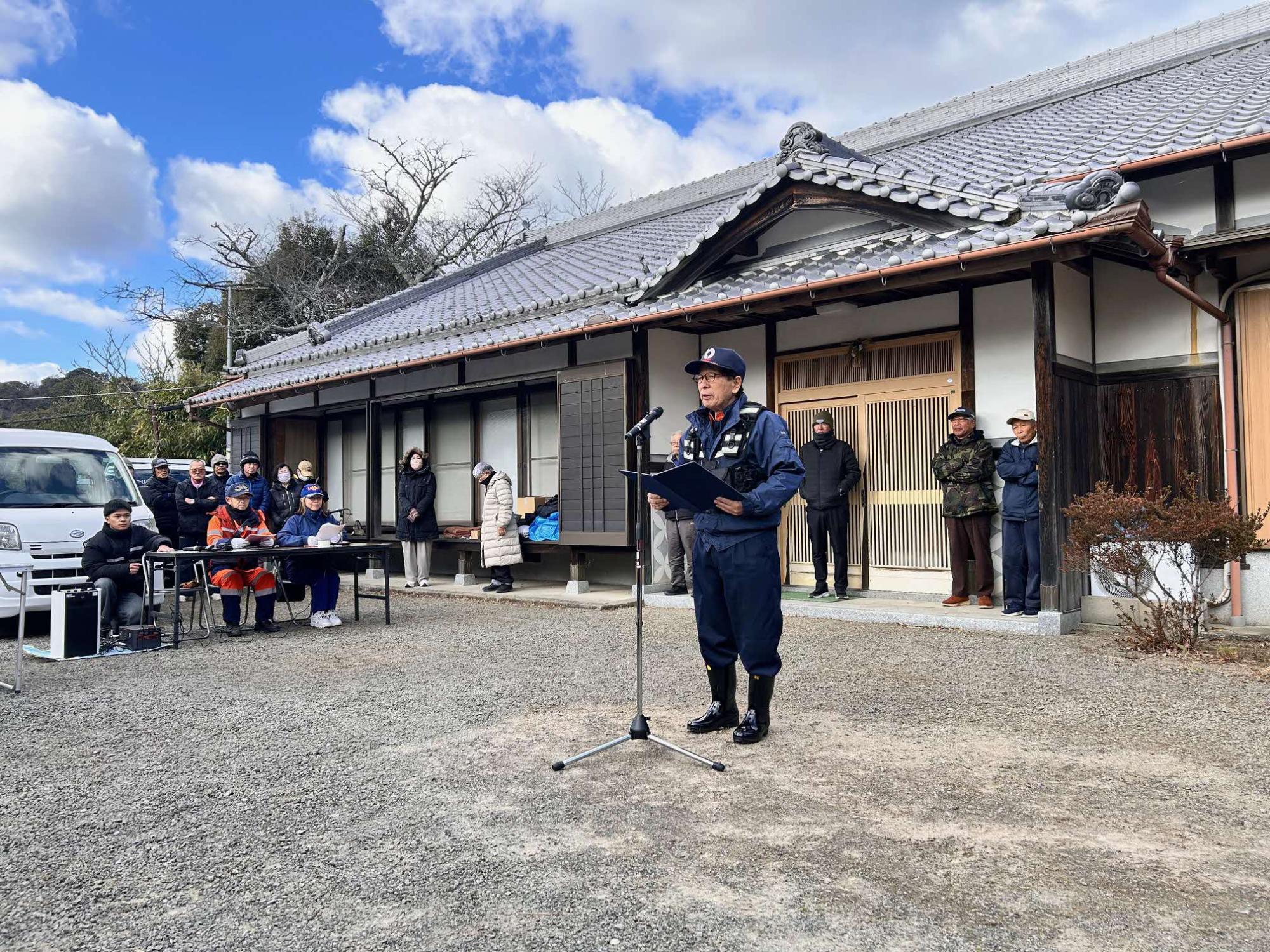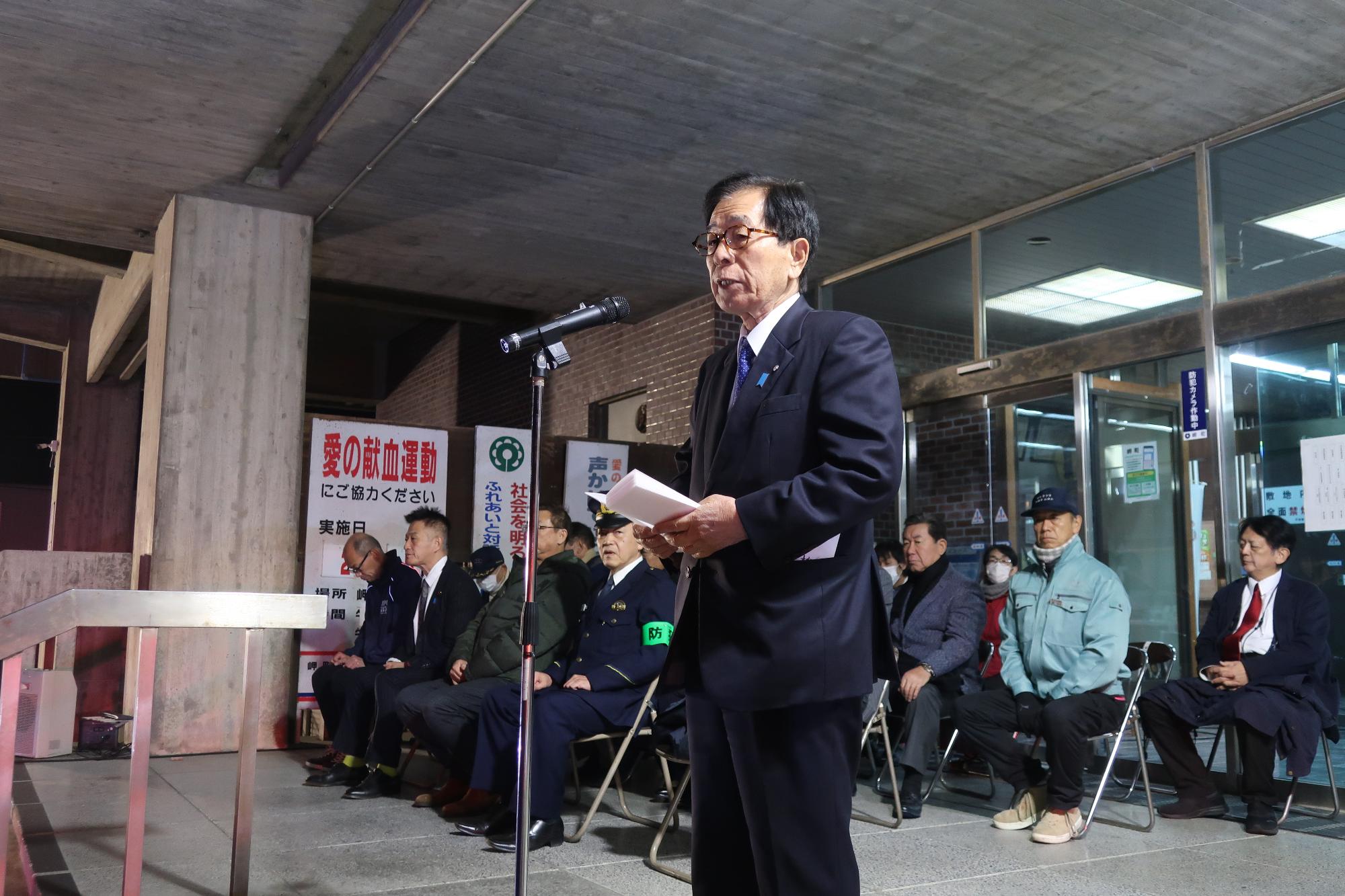 町長は、日頃から、岬町住民の生命・財産を守る役割を担っている消防団に対して感謝の意を表すると同時に住民の皆様が安心して新年を迎えられるように火災予防と啓発活動の実施を呼びかけました。
