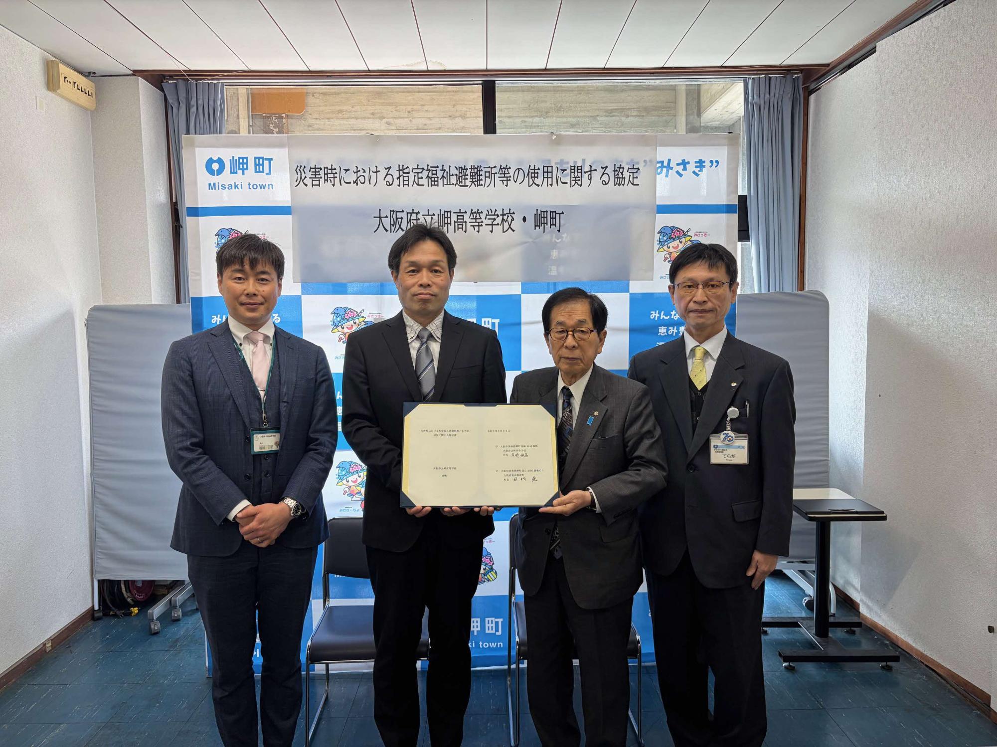 3月23日(月曜日)岬町は、大阪府立岬高等学校と災害時における福祉避難所等としての使用に関する協定を締結しました。