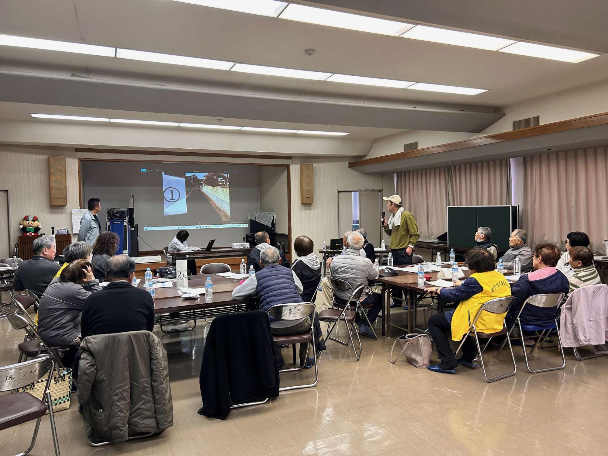 岬町は、地元住民からの依頼により、学習会において岬町の総合防災マップの説明及び、質問等を受けました。