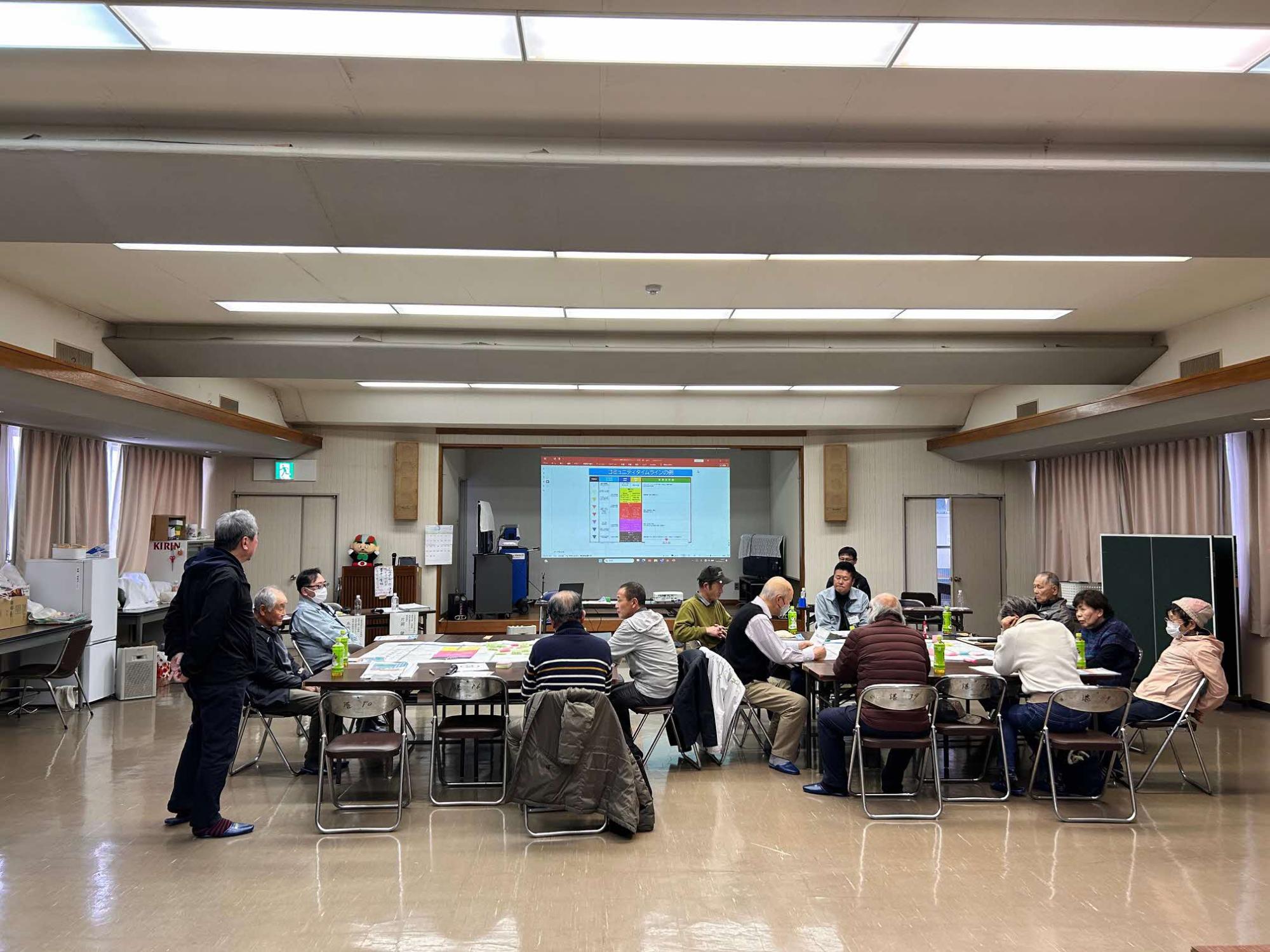 さくら会館において実施された淡輪10区、11区コミュニティタイムライン作成講習会に参加しました。