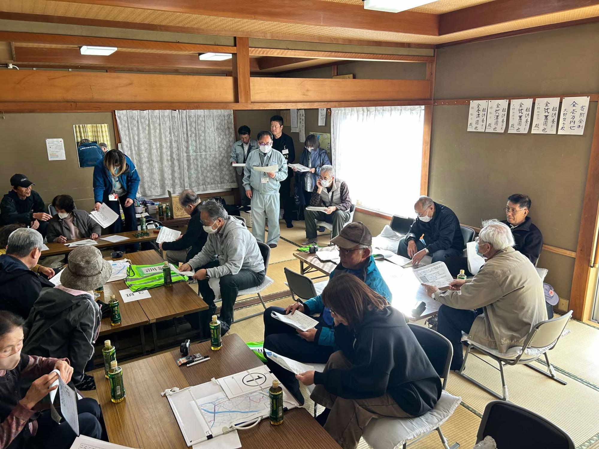 岬町および大阪府は、本コミュニティタイムライン作成にあたり、地域の住民の皆さまへの説明や地域の災害リスク等の説明を行いました。