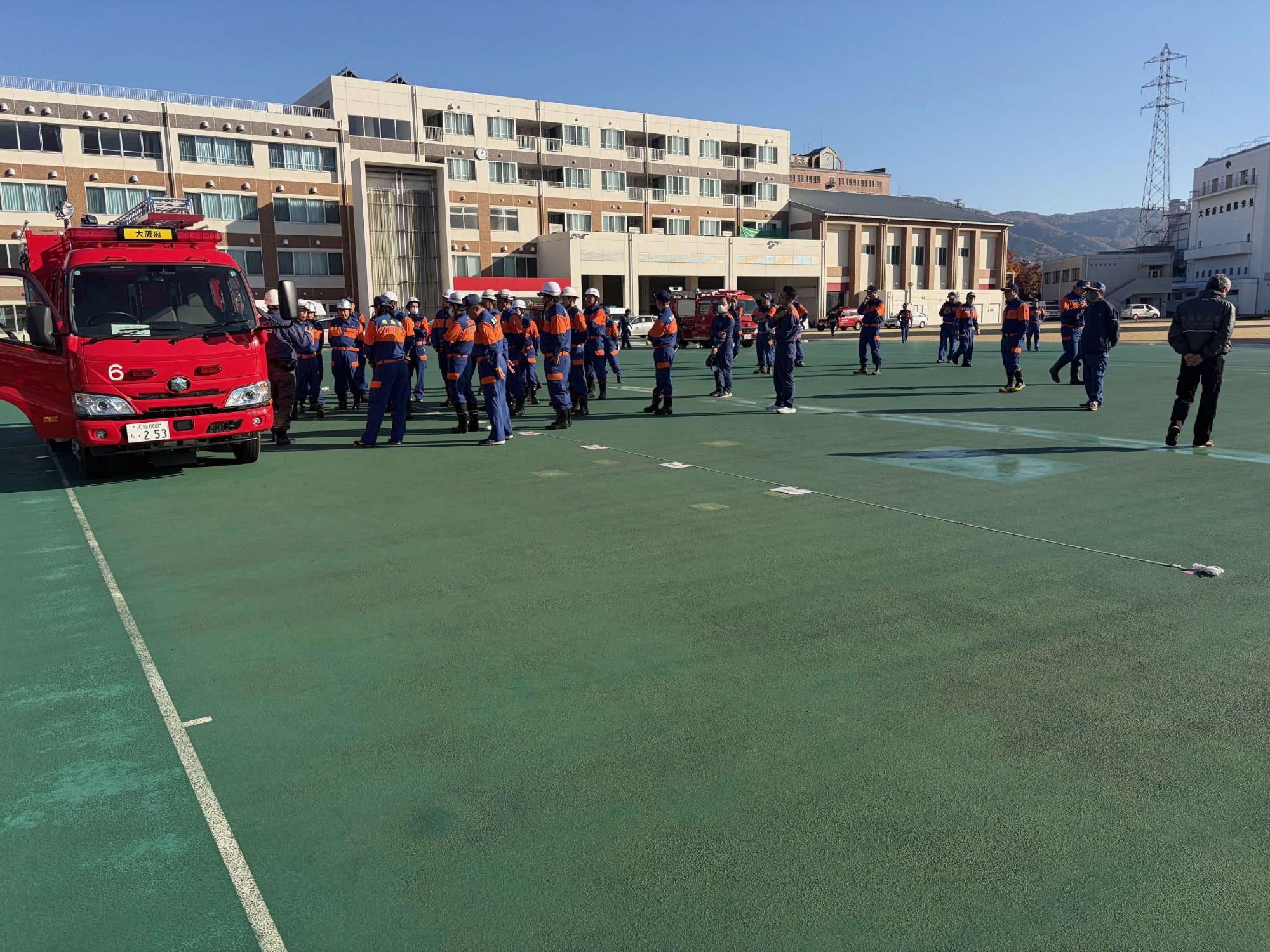 今回の訓練は、ホースの延長から始まり、実際の火災に即した放水を実施いたしました。