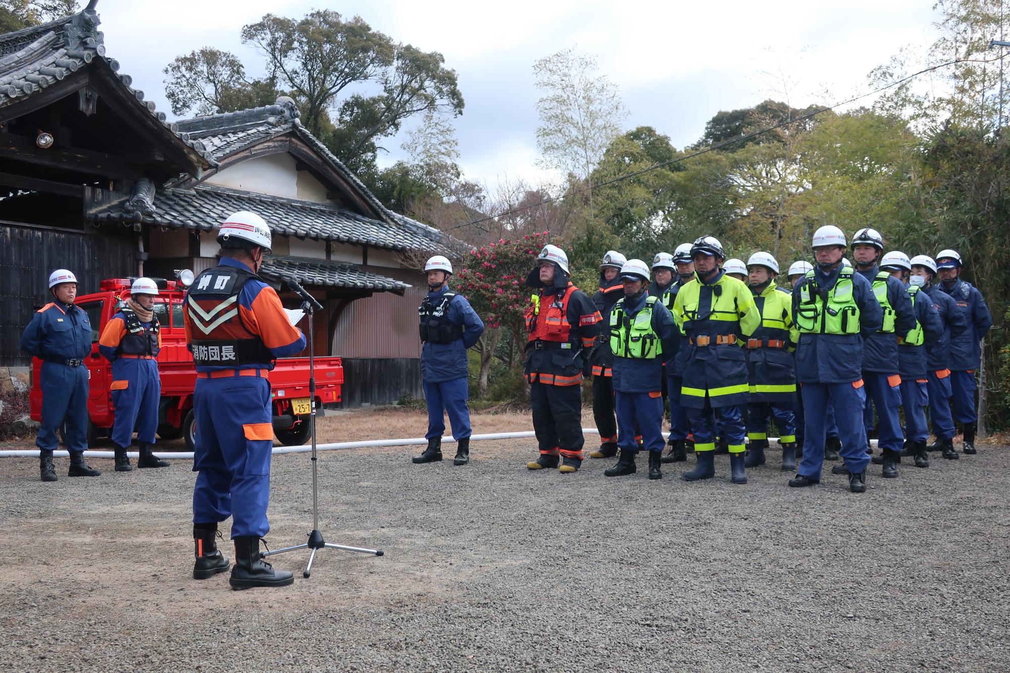 また、団長は、1月17日に阪神淡路大震災の発災から30年を迎え、近年、災害は激甚化し、頻発化してるなかで今後、発生する災害を未然に防ぐことは困難であるが、普段から出来うる限りの手立てを尽くし、災害の被害をより最小限にすることが重要であると団員へ訓示を述べました。
