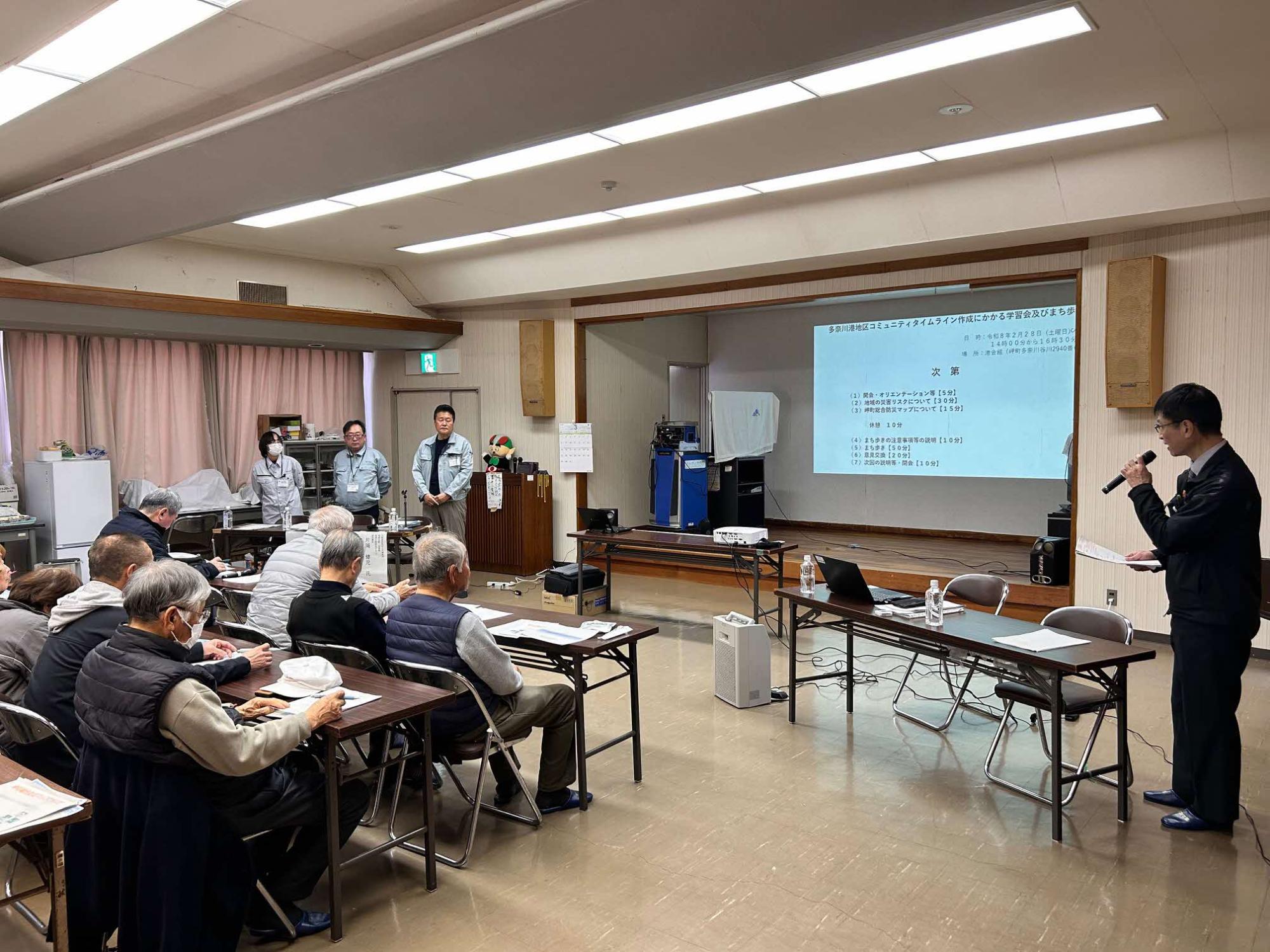 2月28日(土曜日)多奈川港自主防災組織がコミュニティタイムライン作成にかかる学習会及びまち歩きを実施しました。